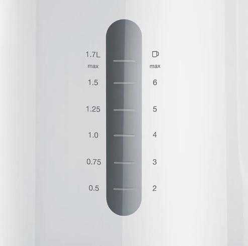 Automatische Abschaltung bei zu niedrigem Wasserstand, erreichter Temperatur oder wenn der Wasserkocher vom Heizsockel genommen wird. Bessere Stabilität bei Schräglage bis zu 15 Grad Neigung.